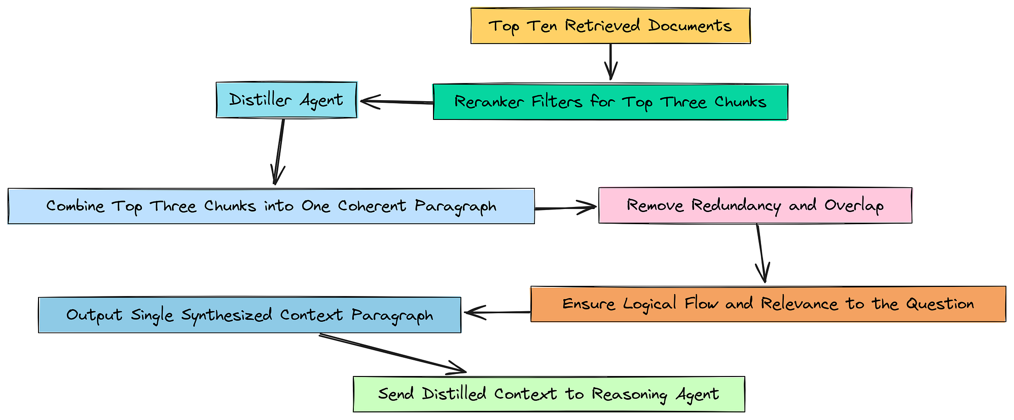 - 上下文蒸馏: 将排名靠前的文档压缩成一个简洁、信息丰富的段落。