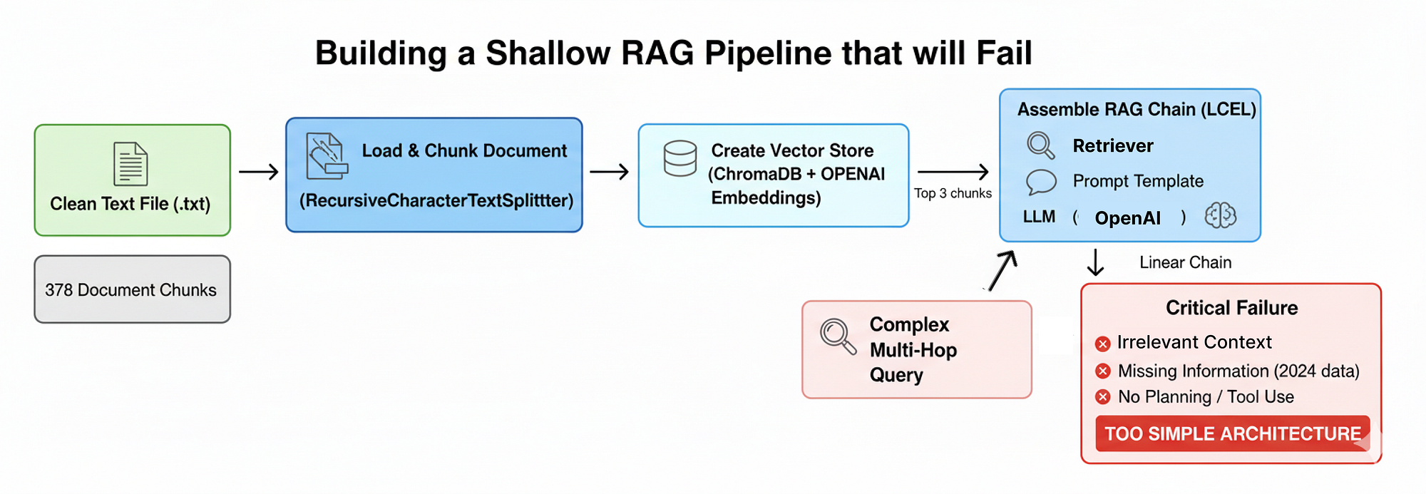 在这篇博客中,我们将实现整个深度思考 RAG 管道,并将其与基本 RAG 管道进行比较,以展示它如何解决复杂的多跳查询。