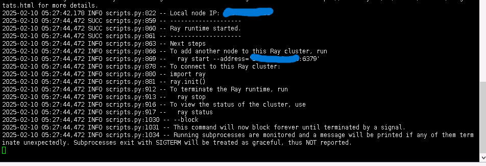 启动命令:( --head为主机 --worker为其他机器使用,命令中的ip都需要填写主机的ip)