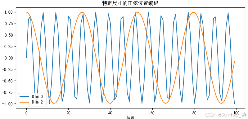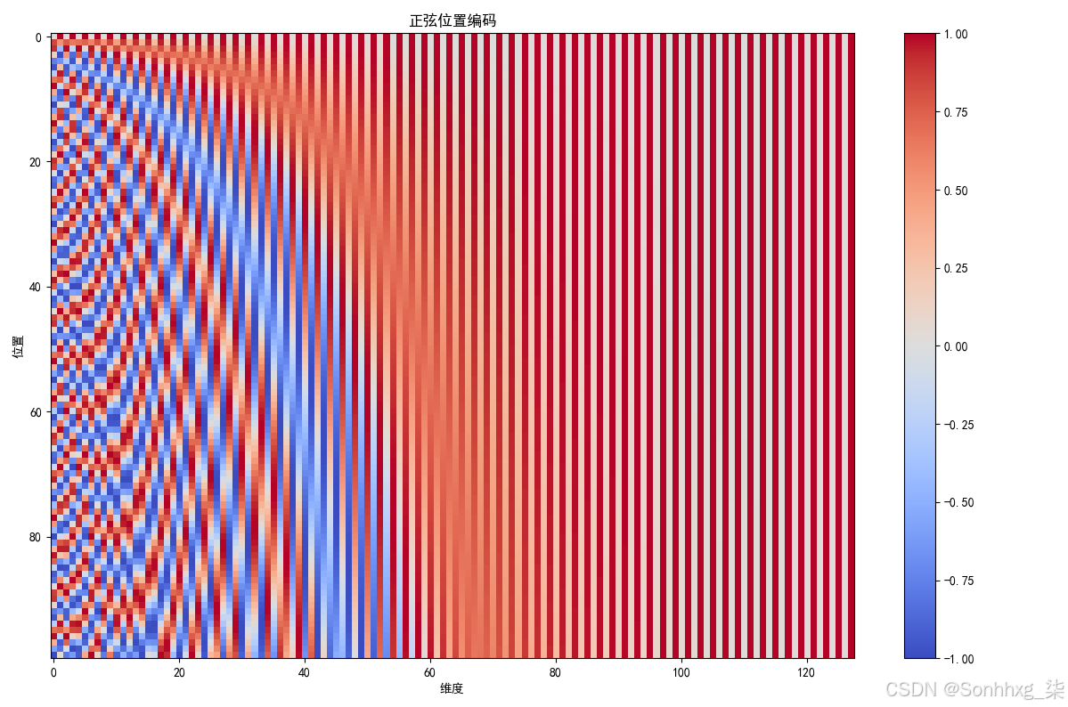 位置编码和嵌入的维度保持一致,均为d_model,这使得两者可以直接相加。其中,pos表示位置索引,i代表维度索引。具体而言,位置编码的每个维度都对应一个独立的正弦波函数。