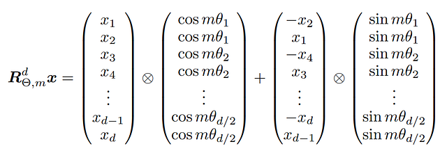 我们将d维(嵌入维度)空间划分为d/2个子空间,并分别应用旋转。