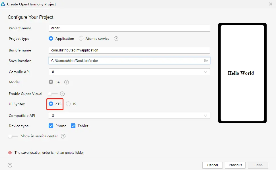 1. 新建OpenHarmony ETS项目