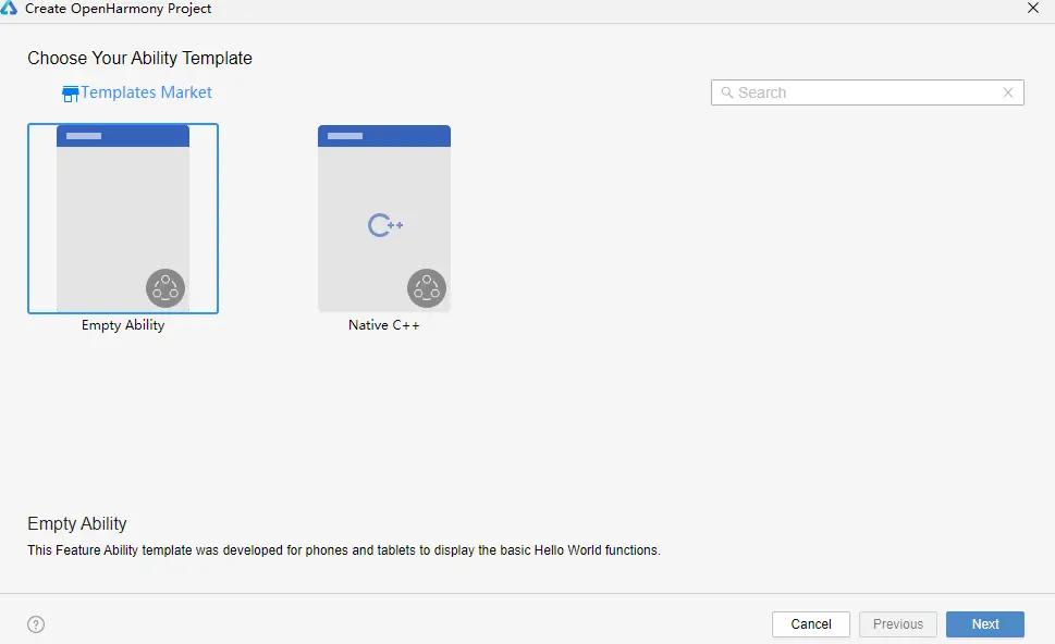 在DevEco Studio中点击File -> New Project ->Empty Ability->Next,Language 选择ETS语言,最后点击Finish即创建成功。