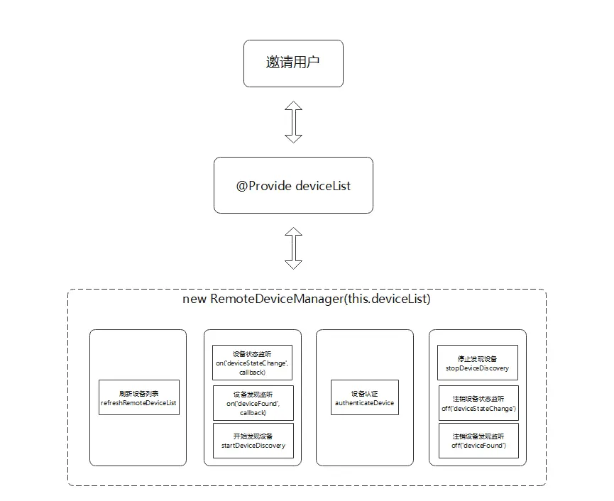 3)设置设备状态监听on(‘deviceFound’,callback),获取到未信任设备,并用discoverList变量进行维护;