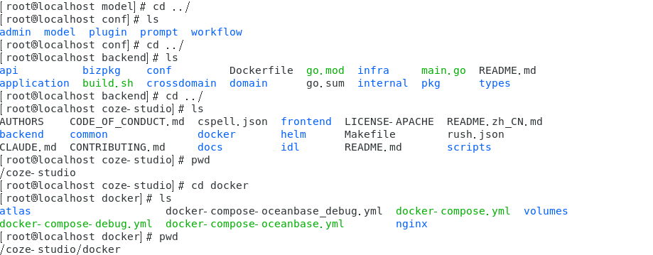 首先找到docker所属目录,应该在/coze-studio/docker