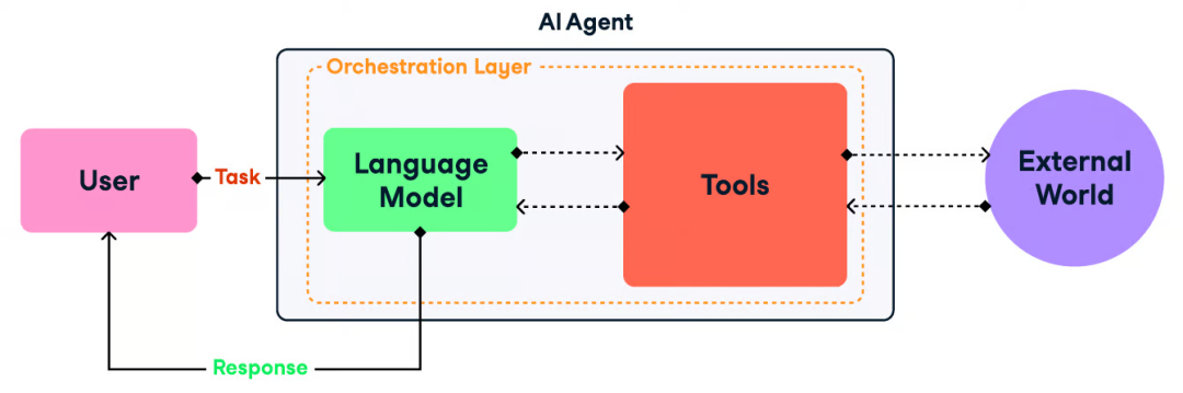 - 编排层(Orchestration Layer ):管理 Agent,让它们能处理信息、编排规划、执行任务,以达成最终目标