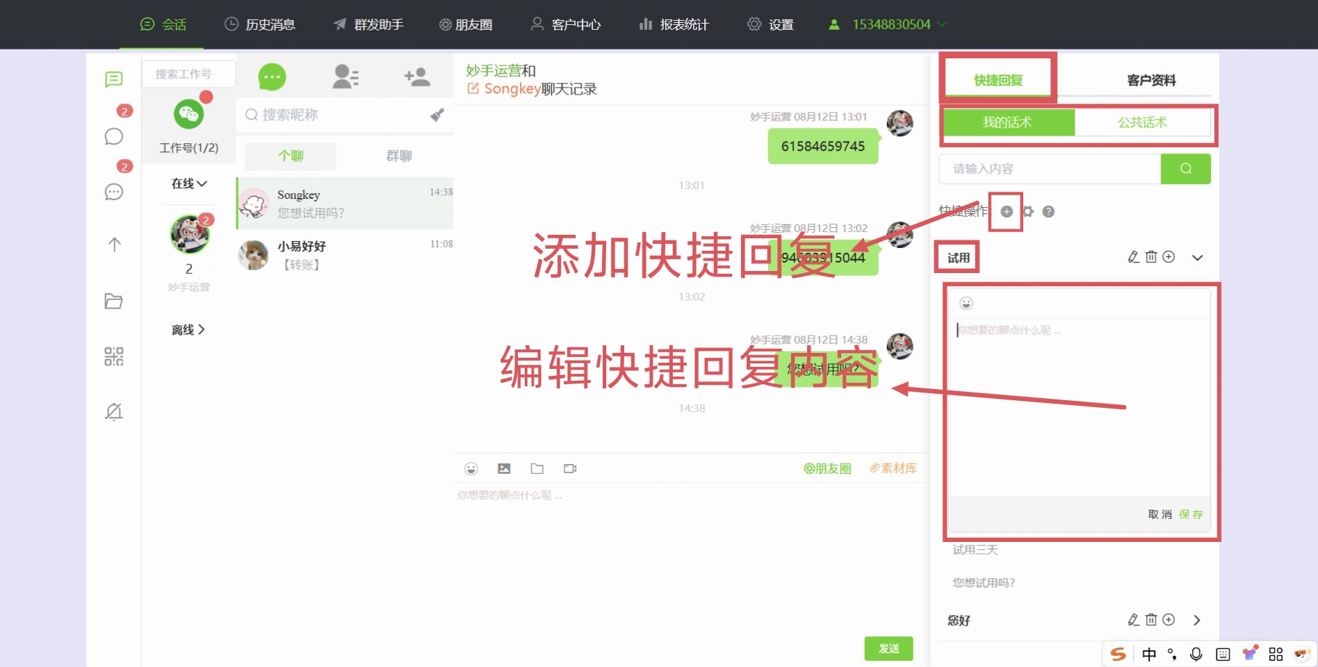 个人话术库:属于自己的常用话术,见机一键发射;