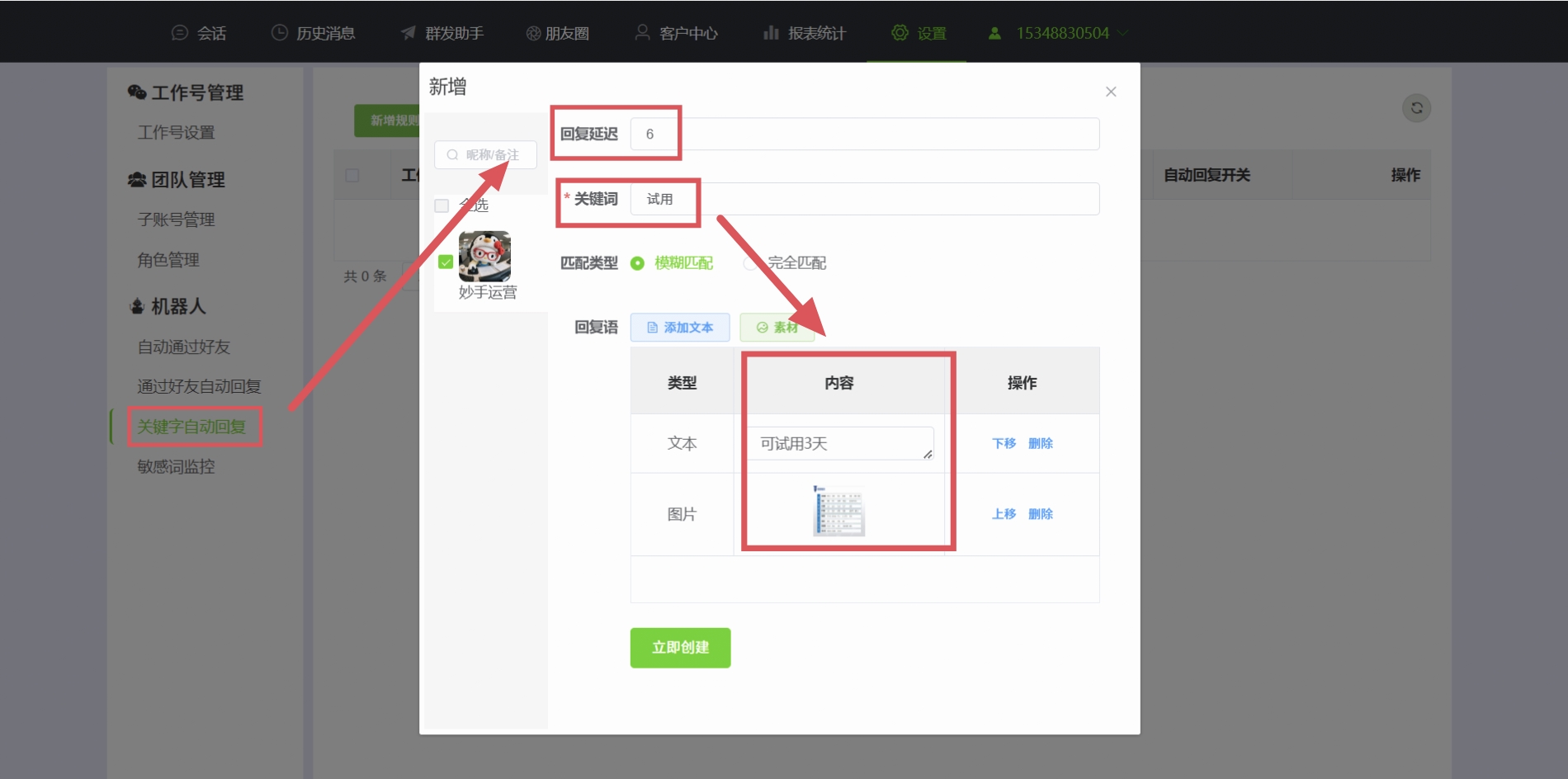 二、关键词自动回复: