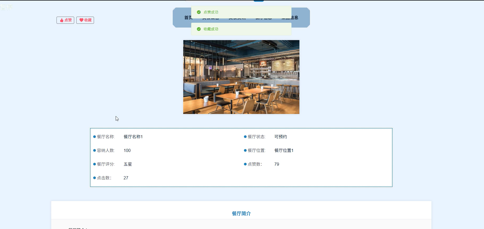 餐厅信息正确增删改,并同步展示 |