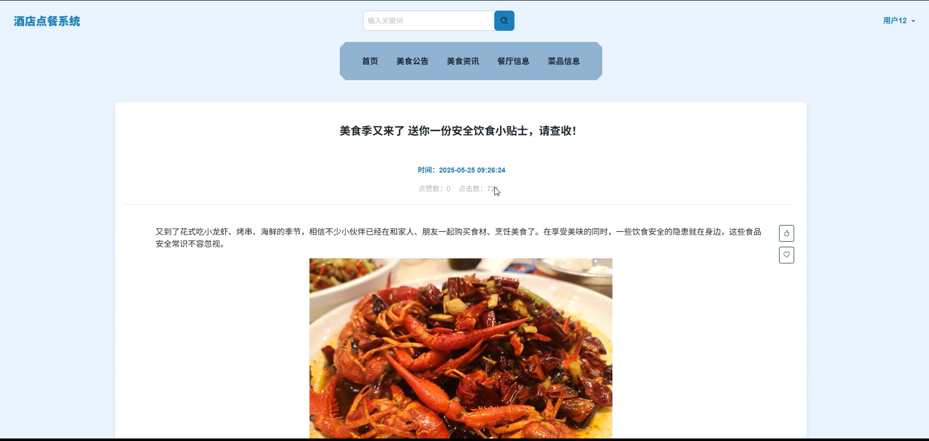 前台“美食资讯”模块显示最新内容 |