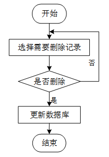 用户选择需要删除的记录后,系统判断是否确认删除。若未确认,返回选择环节;若确认删除,则更新数据库,删除对应记录,完成操作后流程结束。删除信息流程图如图3-6所示。