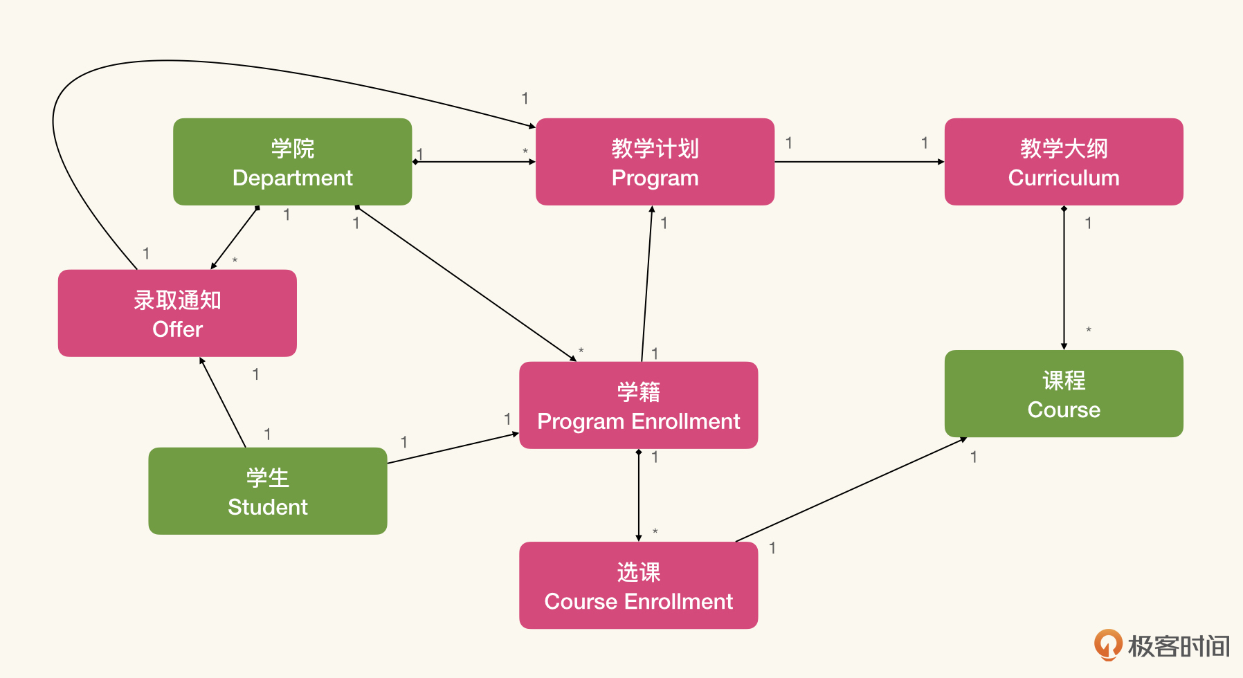 这是一个简化的领域模型,描述了学籍管理系统的核心知识: