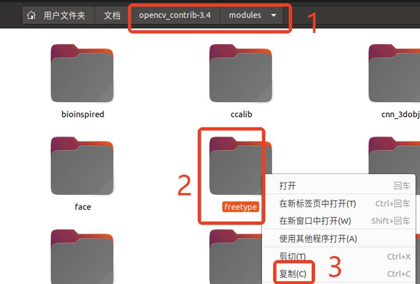 复制opencv_contrib-3.4中的modules/freetype目录