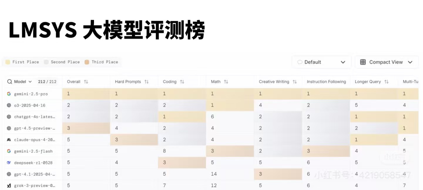 在 LMSYS 的排行榜上,Gemini 2.5 Pro 在各个维度基本上都是最领先的。