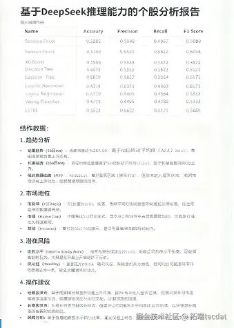 不用对着代码看输出!搭个Streamlit界面,输入Netflix股票代码(NFLX),点击“开始分析”,股价趋势图、模型准确率、DeepSeek的分析报告全出来,手机也能看,给别人演示也专业。