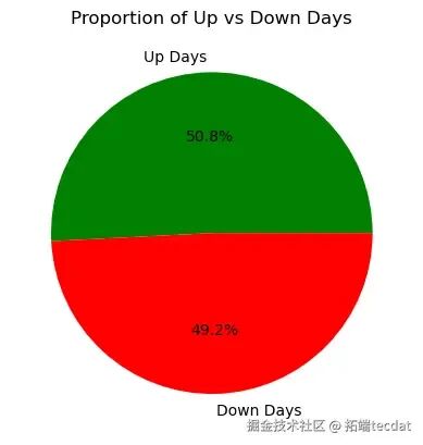 定义“涨”为对数收益率>0,“跌”为≤0,用饼图看涨跌天数占比——能判断股票整体趋势偏不偏。
