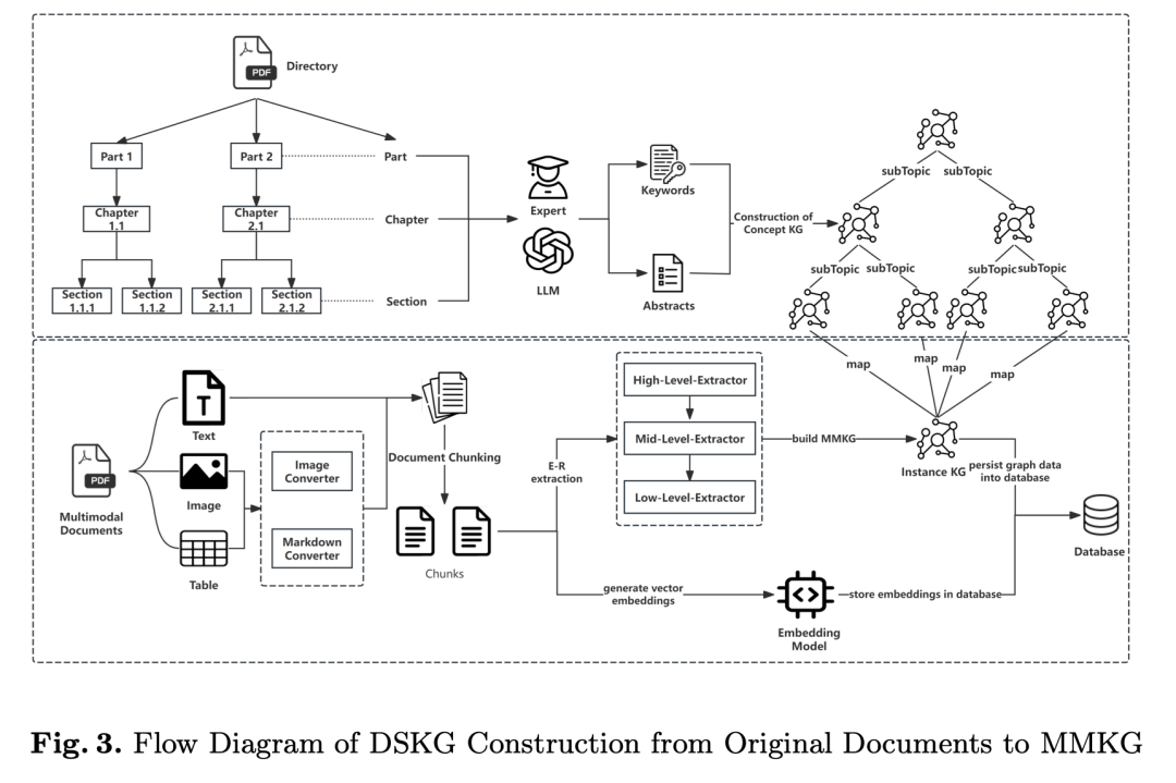 借鉴的点,还是这张图怎么建,构建流程分为三阶段,形成从原始文档到多模态KG的完整pipeline。