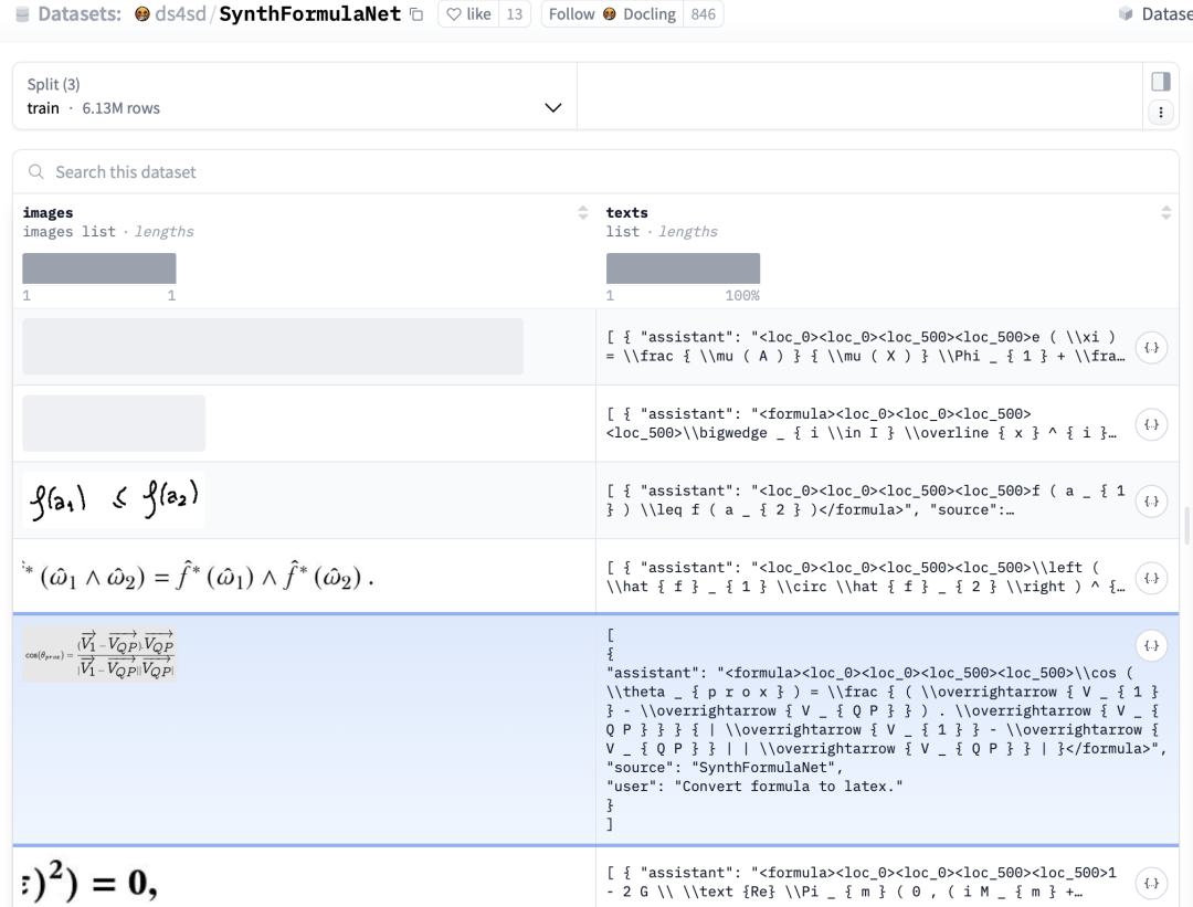 2、SynthFormulaNet,https://huggingface.co/datasets/ds4sd/SynthFormulaNet,【包含合成数学表达式的数据集,每个表达式都配有真实的LaTeX表示】;