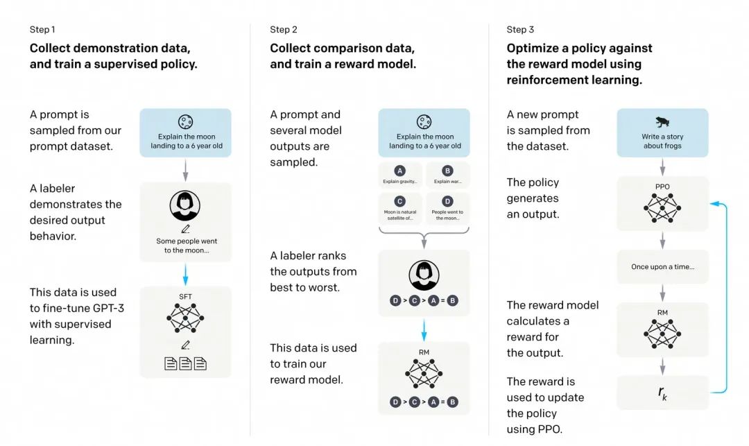 instructGPT提出的SFT和RLHF的流程图,在SFT模型的基础做强化学习的训练往往会提升模型的表现。
