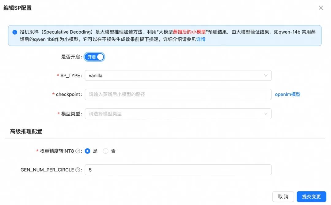- 投机采样:利用“大模型蒸馏后的小模型”预测结果,由大模型验证结果,如qwen-14b 常用蒸馏后的qwen 1b8作为小模型,它可以在不损失生成效果前提下提速。