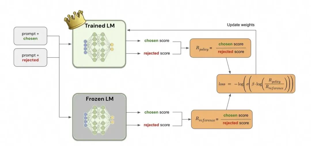 开始训练时,reference model和policy model都是同一个模型,只不过在训练过程中reference model不会更新权重。