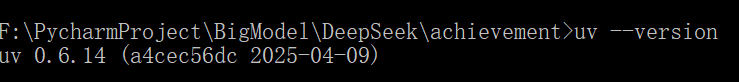 然后我们打开命令行,就可以执行uv命令了,比如我们执行uv --version就可以看到其版本信息: