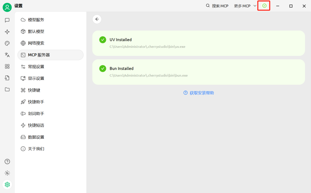 点击确定后,我们就可以在页面看到MCP Server已经正确连接了。