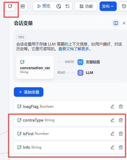 工作流要存的合同类型、是否首次对话标识、和用户上传的新的合同信息。