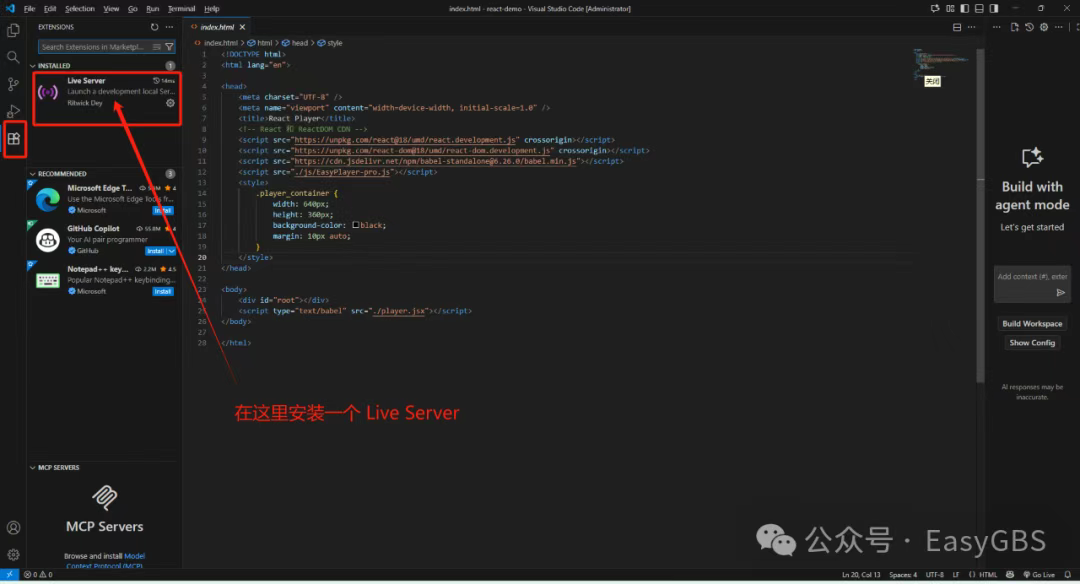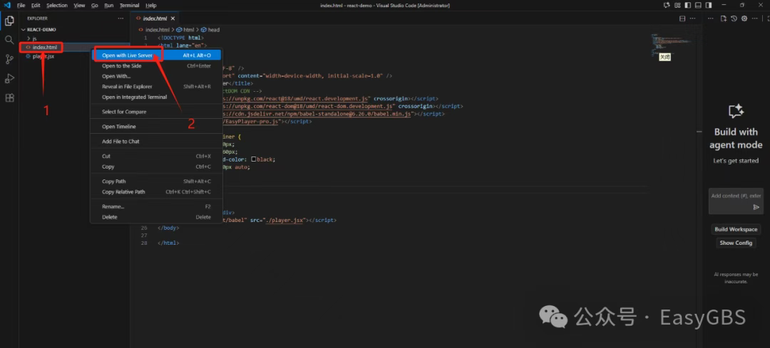 找到文件夹里的“index.html”文件,右键点击,选择“Open with Live Server”打开。最后把刚才复制的视频流地址粘贴进去,搞定!