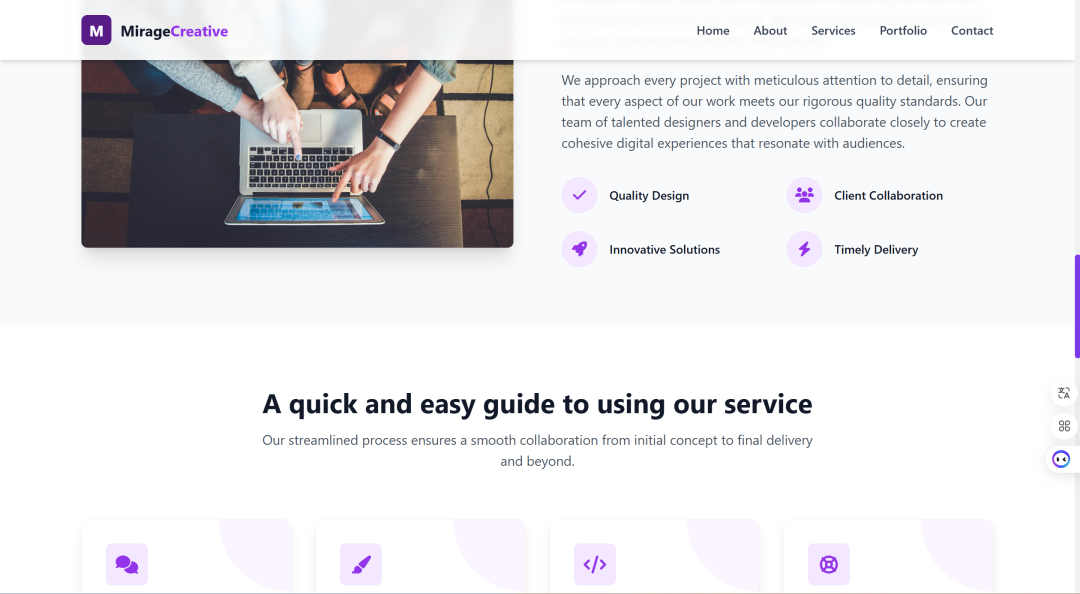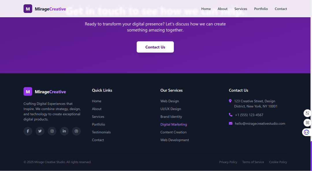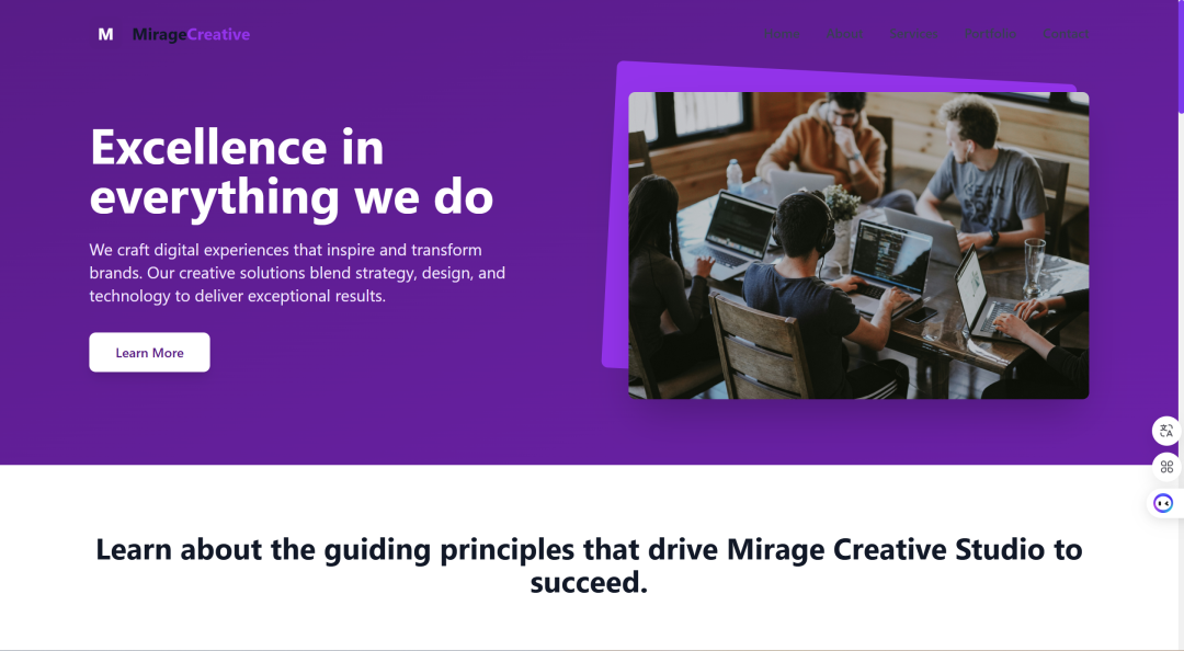 大概几分钟之后,就会看到一个精美的官网直接就生成了,包括菜单栏、内容展示、网站底部的功能等等。