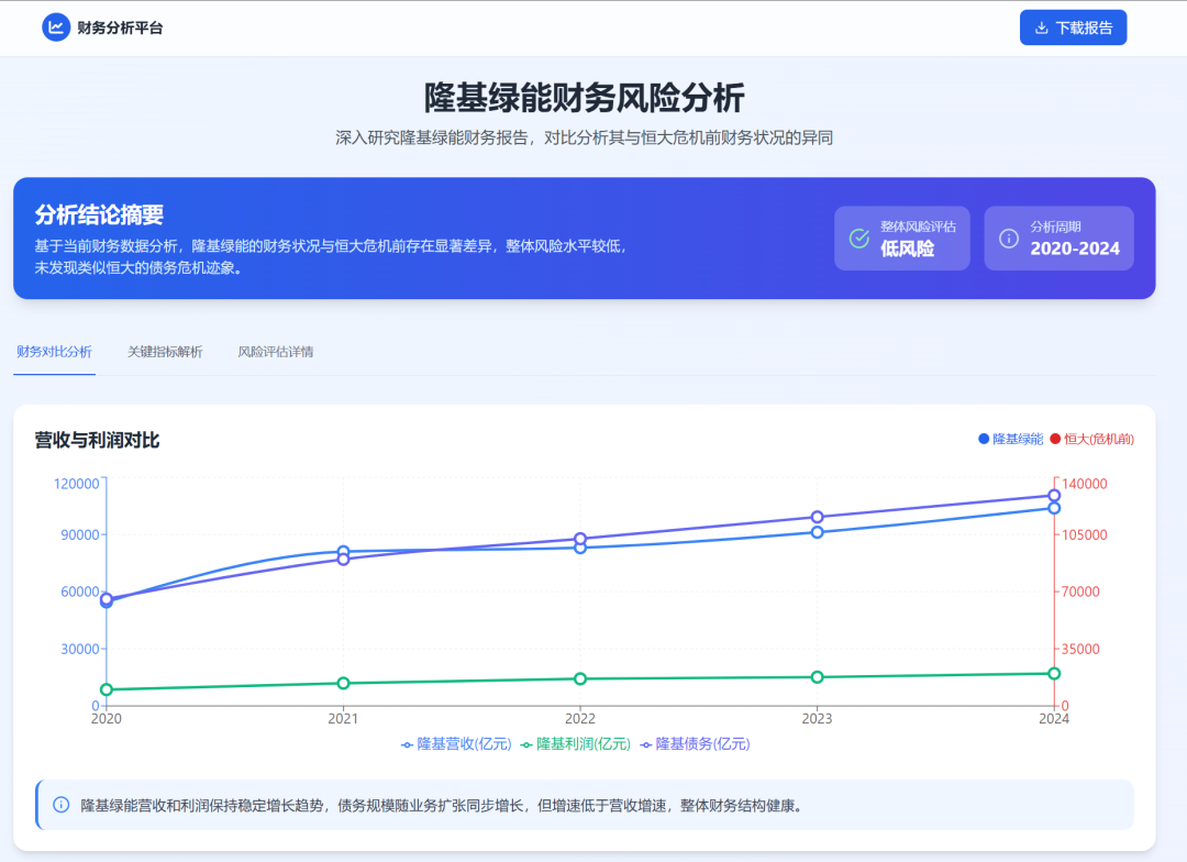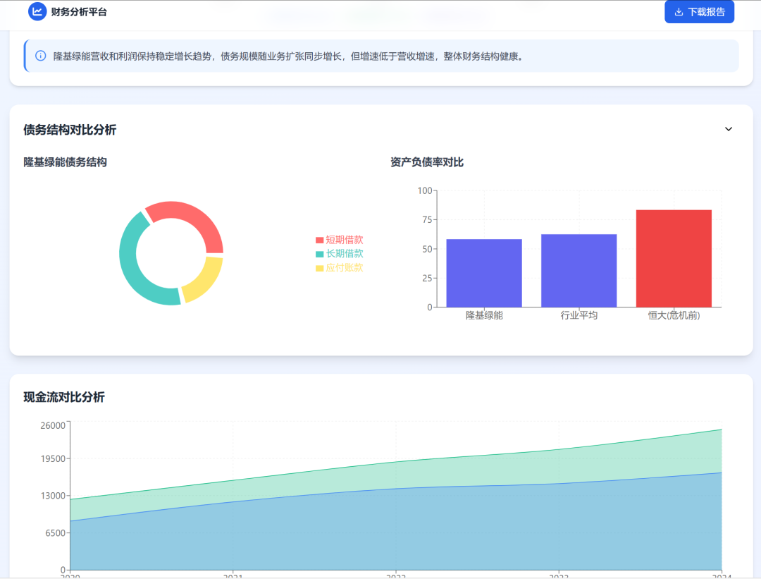 于是我就问了一句:研究隆基绿能的财务报告,分析隆基绿能是不是光伏圈恒大。