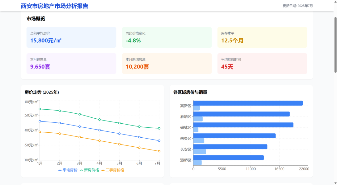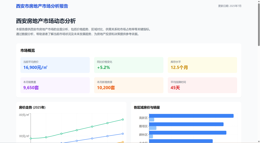 它马上就会自动在网上抓取西安市关于房地产的数据,经过系统分析后,几分钟给我生成了一个报告。