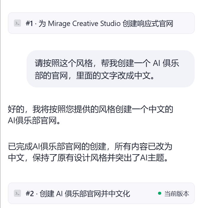 我给它说:请按照这个风格,帮我创建一个 AI 俱乐部的官网,里面的文字改成中文。