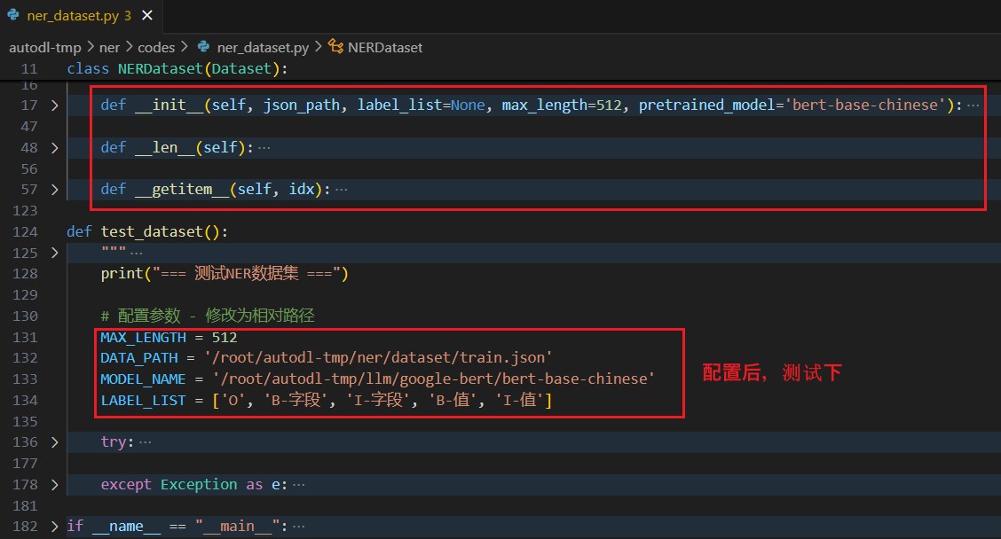 功能:用于加载和预处理命名实体识别任务的数据,实现基本方法 len、getitem