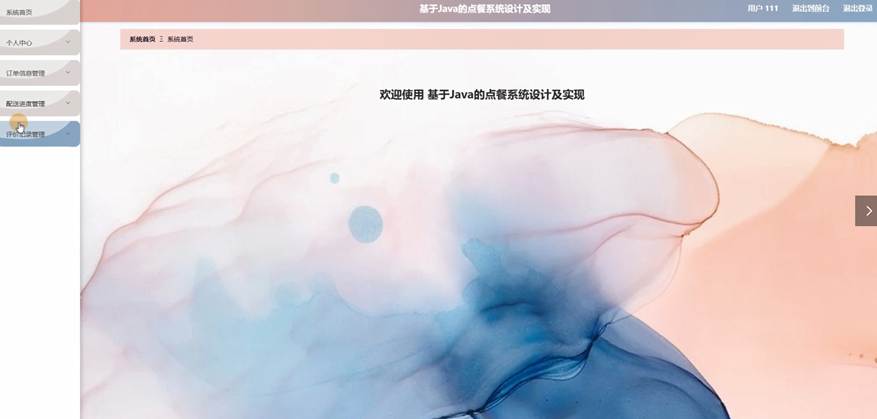用户登录到系统主页面后可以对系统首页、个人中心、订单信息管理、配送进度管理、评价记录管理等功能进行操作。如图5-11所示: