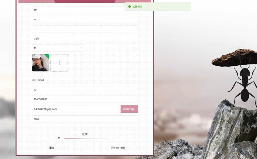 在系统首页点击左侧的注册/登录按钮,然后页面跳转到注册登录界面,后来输入信息完成后,单击注册或者登录操作,如图5-13所示:
