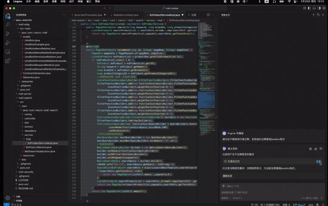 作为AI原生的开发环境工具,通义灵码AI IDE深度适配了最新的千问3大模型,并全面集成通义灵码插件能力,具备编程智能体、行间建议预测、行间会话等功能。