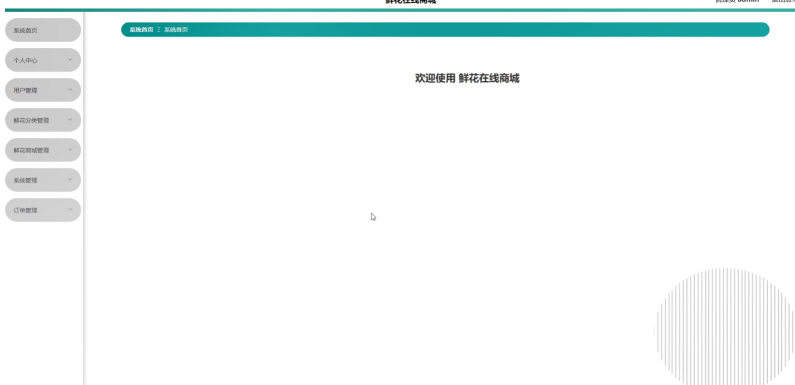 管理员登录进入鲜花在线商城可以查看系统首页、个人中心、用户管理、鲜花分类管理、鲜花商城管理、系统管理、订单管理等信息,进行相应操作,如图5-8所示。