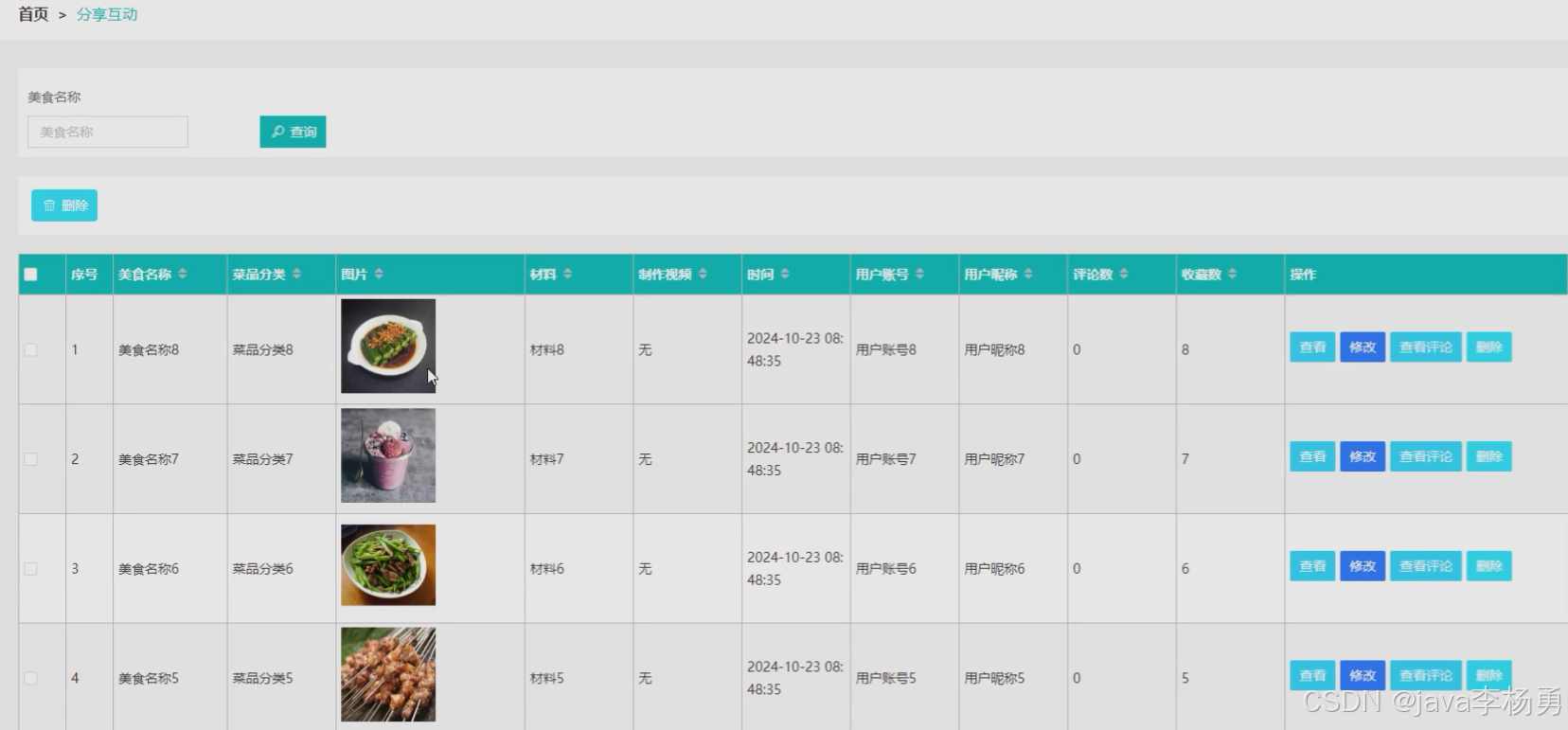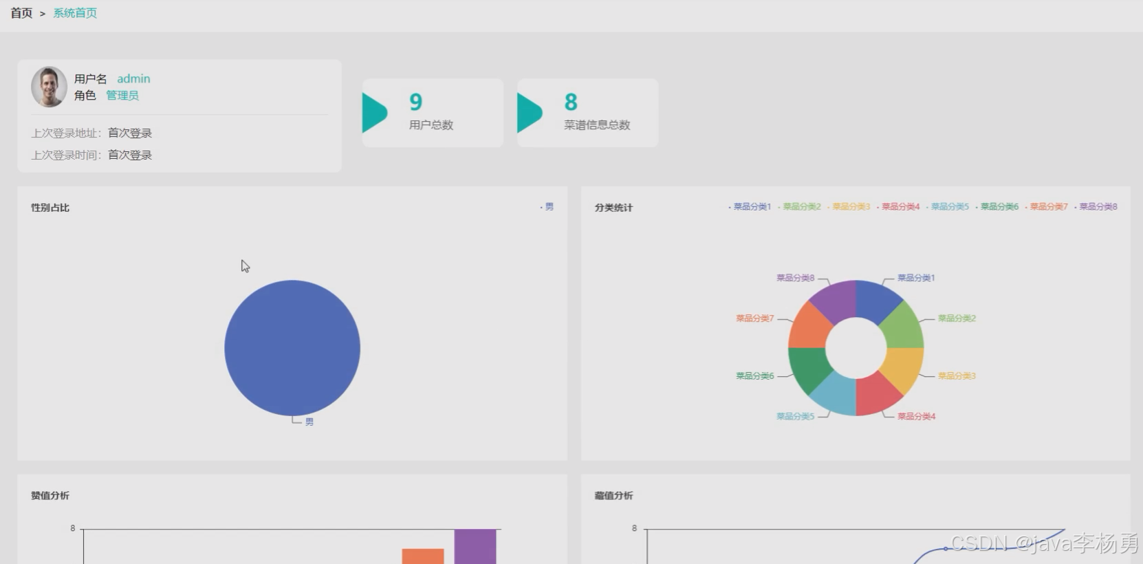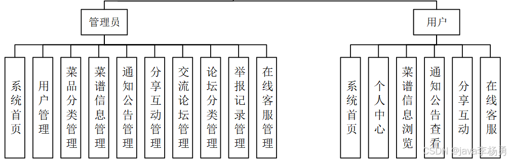 本系统的前端采用Vue框架,后端基于SpringBoot开发,数据存储则使用MySQL数据库。系统主要功能包括用户端的菜谱信息推荐、通知公告、分享互动、交流论坛及在线客服等;管理员端则提供可视化的数据分析功能,包括性别占比、菜品分类统计、赞值和藏值分析,还有个人中心、用户管理、菜谱管理及在线客服管理等功能。通过本系统,用户能够更高效地获取和分享菜谱,而管理者则能更好地掌握用户需求和市场动态,为家庭烹饪提供强有力的支持。
