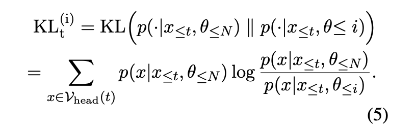 具体来说,给定上下文 和 层模型的参数知识 ,第 层与最后一层的 KL 散度可以被表示为: