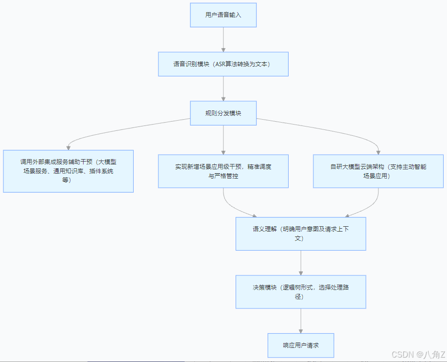 - 规则分发模块:接收语音识别后的文本信息,是实现新增场景应用级干预的关键环节。