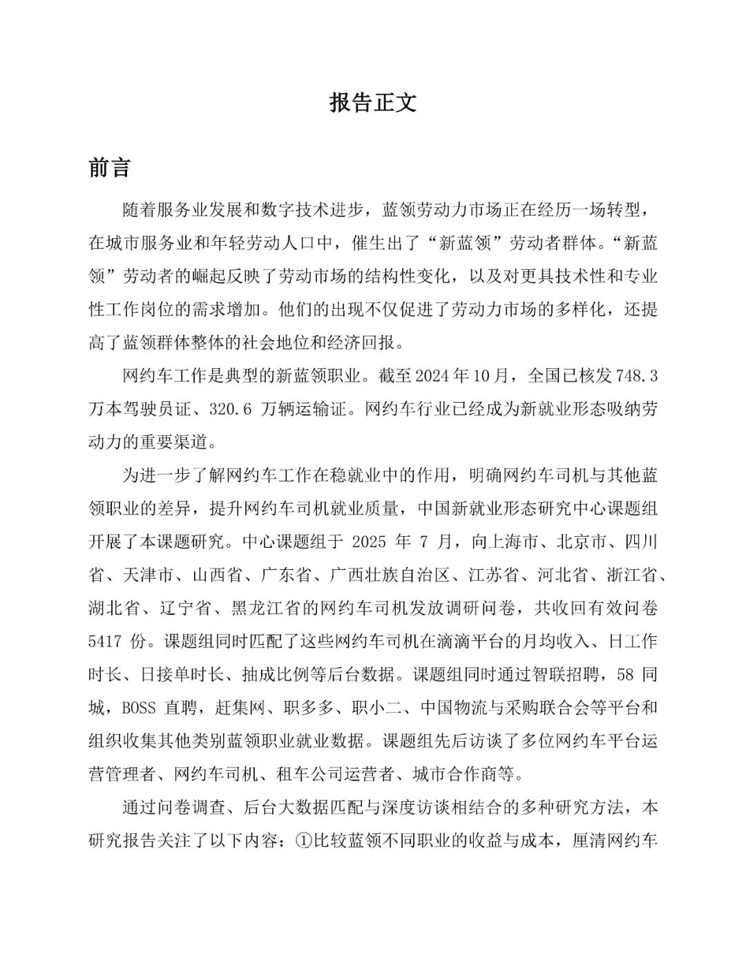 中国新就业形态研究中心发布《城市出行的就业韧性:网约车司机就业图景与职业表现(2025)》报告,通过问卷调研、大数据匹配与深度访谈,系统分析网约车司机就业现状、平台赋能机制、就业缓冲作用及行业瓶颈,并提出政策建议。