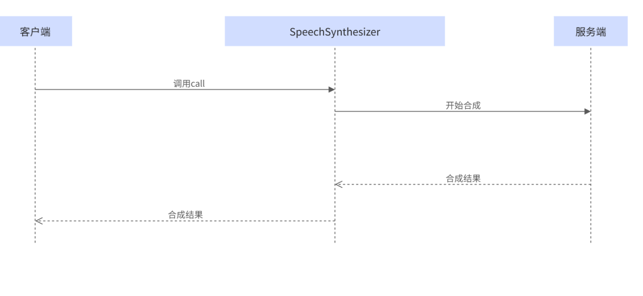 同步调用:提交文本后,服务端立即处理并返回完整的语音合成结果。整个过程是阻塞式的,客户端需要等待服务端完成处理后才能继续下一步操作。适合短文本语音合成场景。