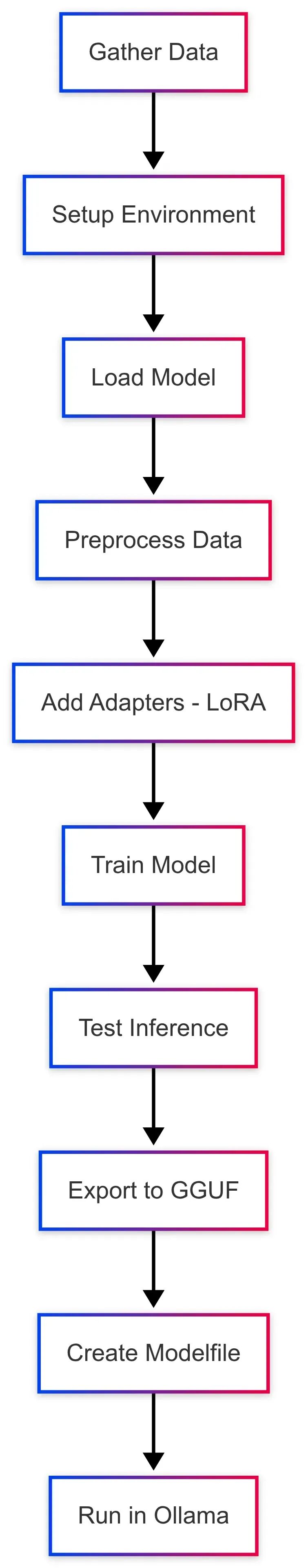 下面是全流程。我们会用 Unsloth(一个免费、开源、快速微调工具)和 Google Colab(免费的云端 GPU,不用高端硬件)。Base model 用 Phi-3 Mini(又小又快)。