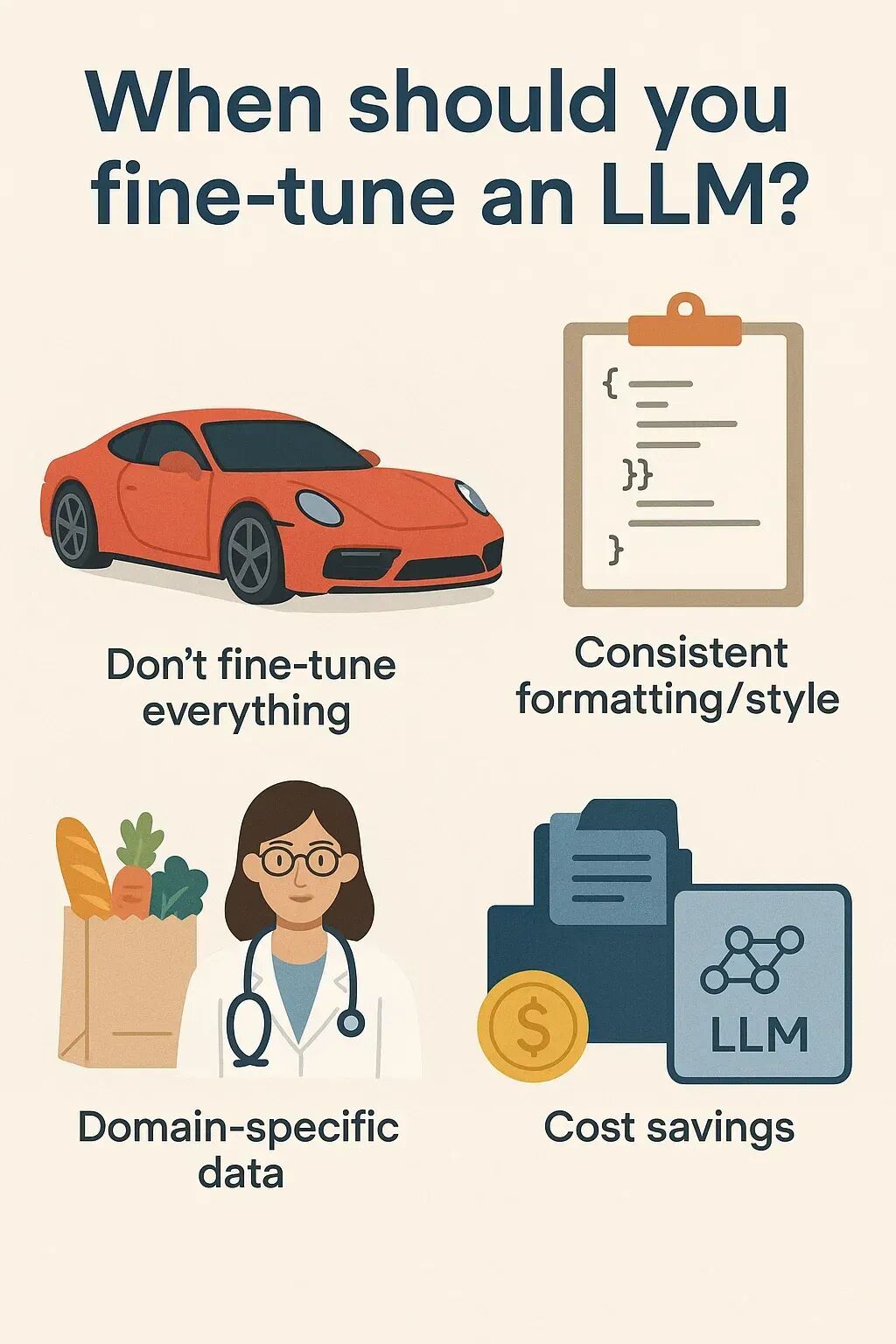 微调是拿一个已经预训练好的 LLM(比如 GPT 或 Llama),它已经很懂得通用语言了,然后针对你的特定任务“调校”一下。你给它喂一些你领域的例子,它就会调整自己的知识,专门为这个领域发光发热。