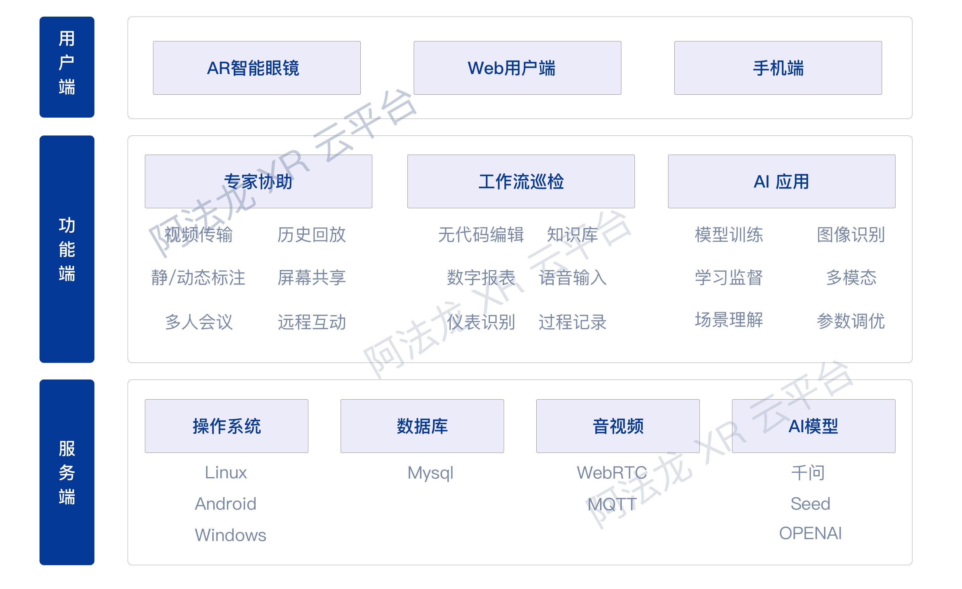 现场工作人员可借助手机、平板电脑、智能眼镜等设备,通过 4G、WiFi 网络与后方的技术支持专家建立实时视频连接。后方专家能通过实时语音交流或图文信息等形式,与现场人员开展协作,实现远程配合。该功能支持在语音和视频模式间切换,切换至语音模式后,仅进行音频传输,双向视频画面传输将终止。