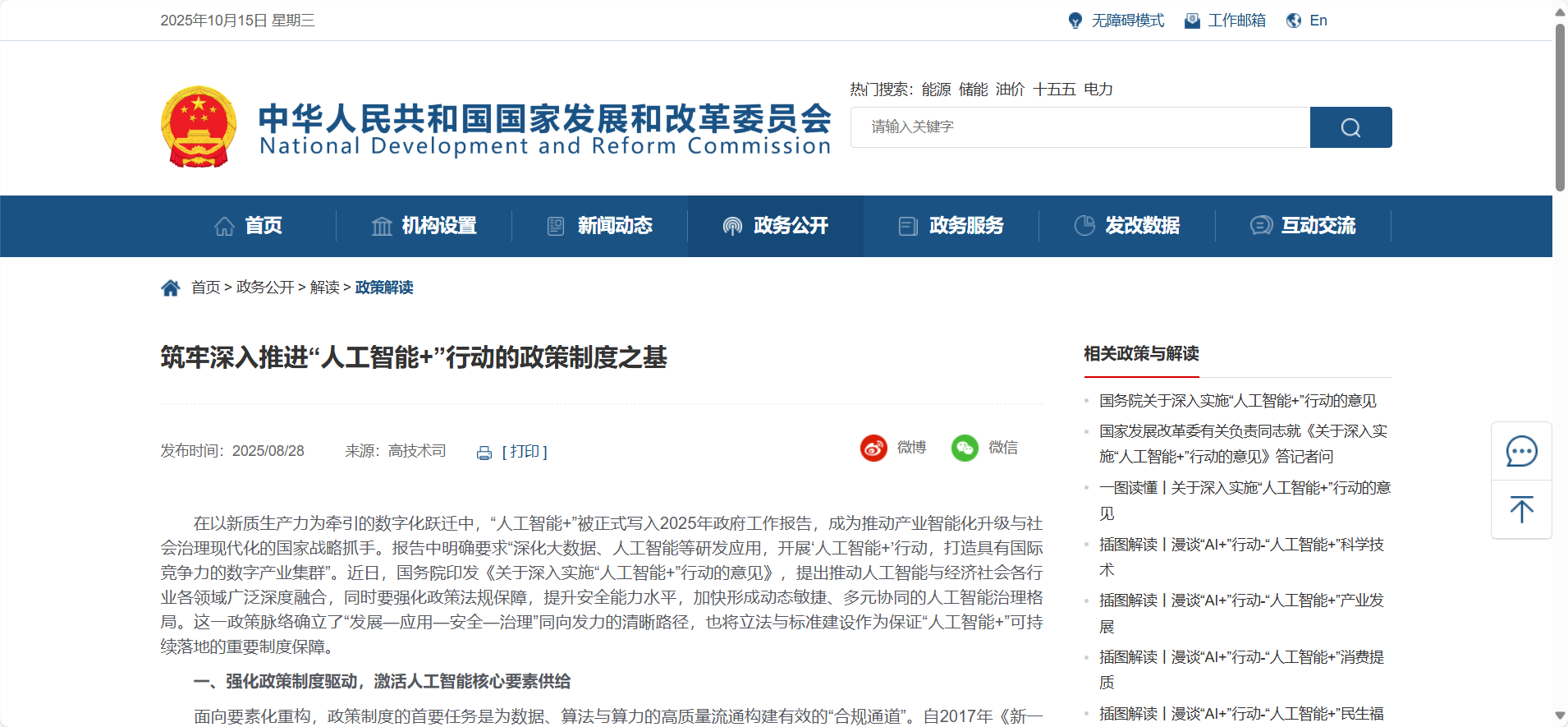 2025年,国家发展改革委与国家能源局联合发布《关于推进“人工智能+”能源高质量发展的实施意见》,为能源与AI的深度融合划定了科学路径。这份文件标志着我国能源行业正迈入一场系统性、革命性变革。