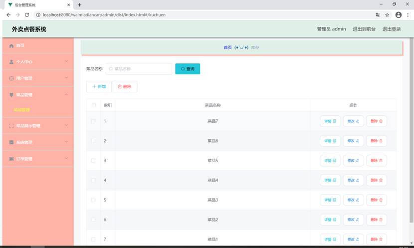 - 菜品管理模块:实现菜品的添加、修改、删除和查询