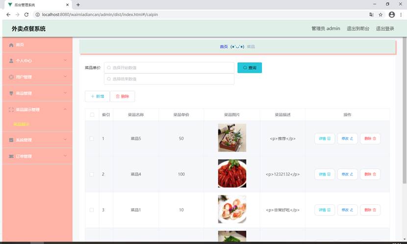 菜品管理功能实现
