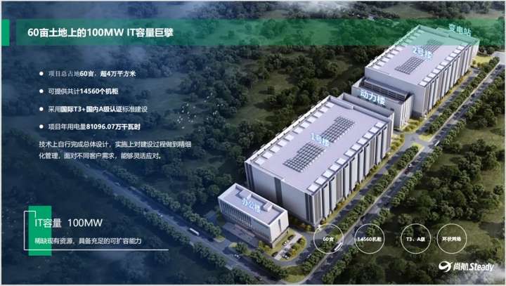 根据规划,怀来尚云智算中心建筑面积11.96万平方米,按照国标A级绿色低碳数据中心建设,共包含2栋数据中心、2栋柴发楼、1栋变电站及1栋综合办公楼等配套辅助设施,建成后将提供约14560个机柜。建成投产后,将成为京津冀地区举足轻重的AIDC智算基础设施之一,为环北京的万亿级大模型训练、各类AI推理、大体量数据存储等需求提供全面可靠的支撑保障。